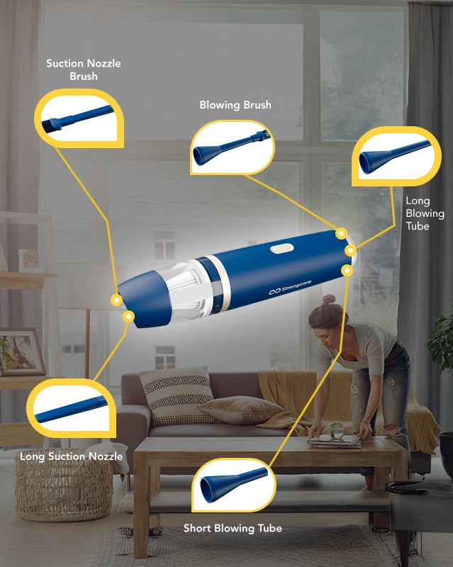 Engineered with dual suction and blowing modes, featuring high and low speeds to handle everything from quick touch-ups to deep cleans.